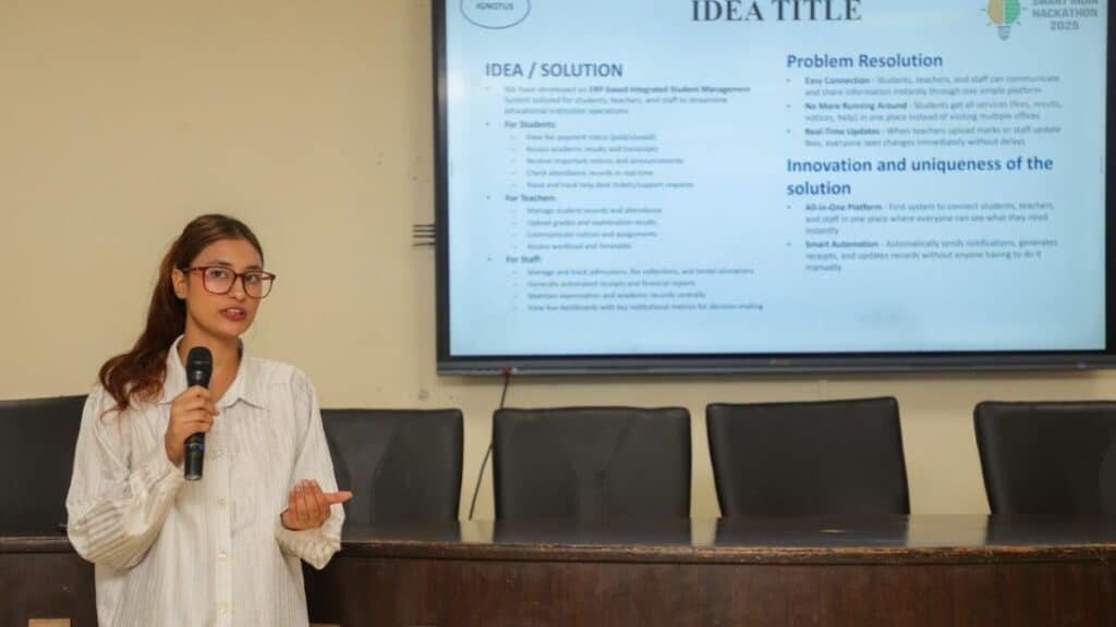 स्कूल ऑफ आईटी के विभागाध्यक्ष प्रोफेसर (डॉ.) अजय कुमार गुप्ता ने बताया कि इंटरनल हैकाथॉन के दौरान विद्यार्थियों ने तकनीकी दक्षता के साथ-साथ टीमवर्क, रचनात्मकता एवं आत्मविश्वास की परीक्षा दी. जिससे वे आगामी स्मार्ट इंडिया हैकाथॉन में उत्कृष्ट प्रदर्शन करने के लिए पूरी तरह तैयार हो सके. उन्होने बताया कि कार्यक्रम के पहले दिन छात्रों को वास्तविक चुनौतियों के समाधान के लिए प्रोग्रामिंग एवं कोडिंग राउंड रखे गए. वहीं दूसरे दिन छात्रों ने स्मार्ट इंडिया हैकाथॉन की समस्या-परक स्टेटमेंट्स पर आधारित अपने नवाचार पूर्ण प्रोटोटाइप प्रस्तुत किए.